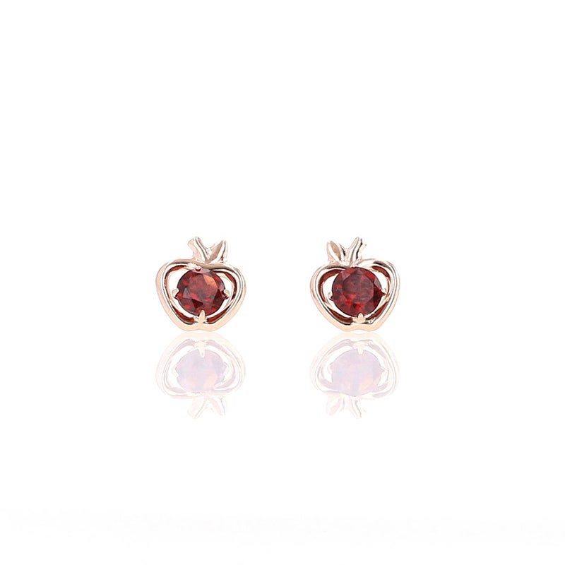 りんごモチーフのフレームにガーネットを1石セットしたピアス。