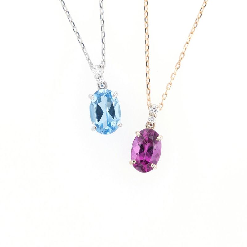 オーバルカットの鮮やかなカラーストーンが目を惹くネックレス。