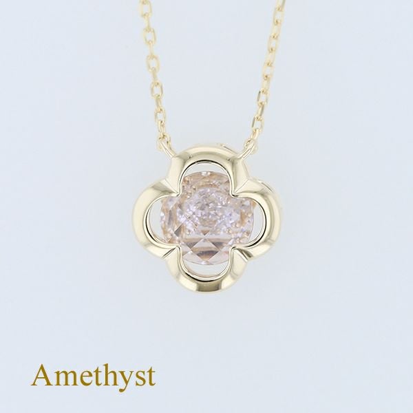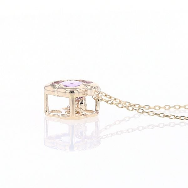 K10 YG アメジスト ダイヤモンド フラワー ネックレス