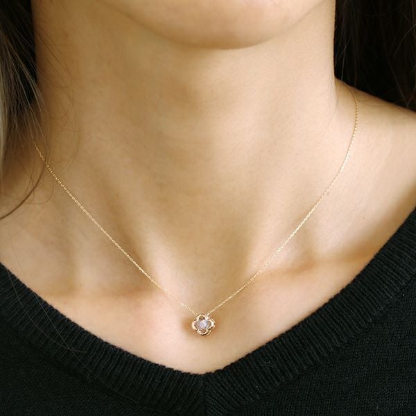 フラワーモチーフに淡い色味のアメジストをセットしたネックレス。