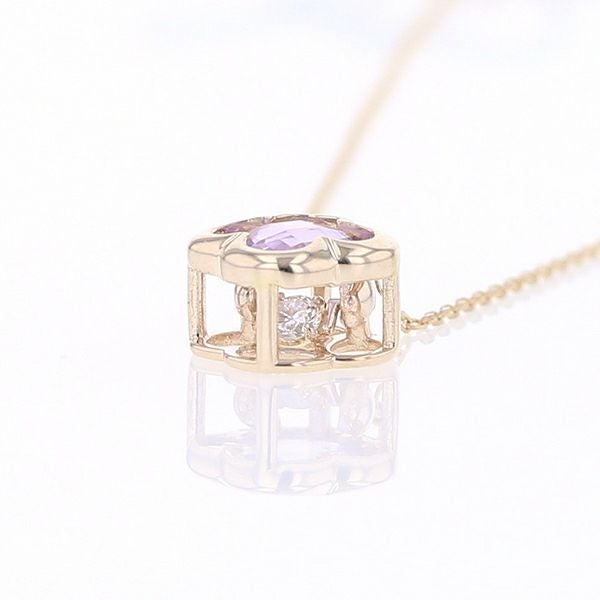 K10 イエローゴールド アメジスト ダイヤモンド ネックレス フラワー トップスウィングスター