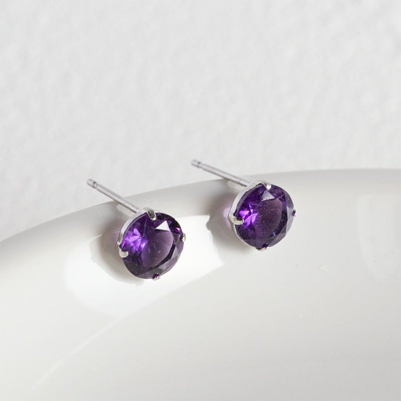澄みわたる紫が印象的な、気品ある輝きを放つ一粒アメジストピアス。