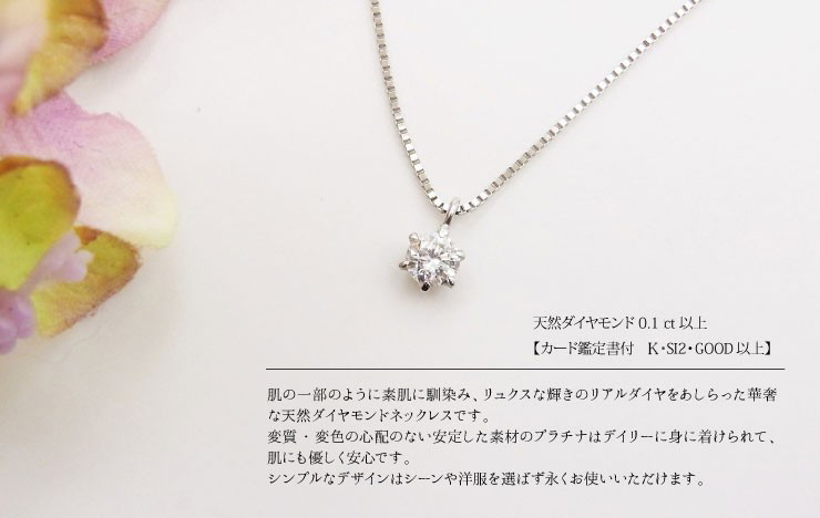 鑑定書付 0.1ct プラチナ ダイヤモンド ネックレス
