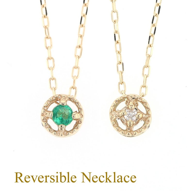 K10 YG エメラルド ダイヤモンド リバーシブル ネックレス イエローゴールド 5月 誕生石 プレゼント