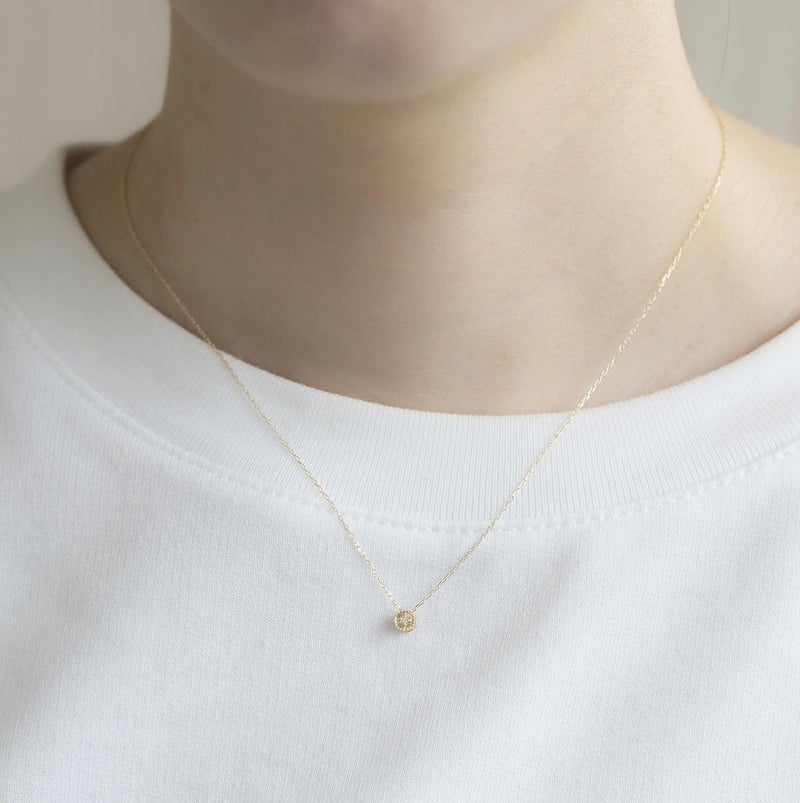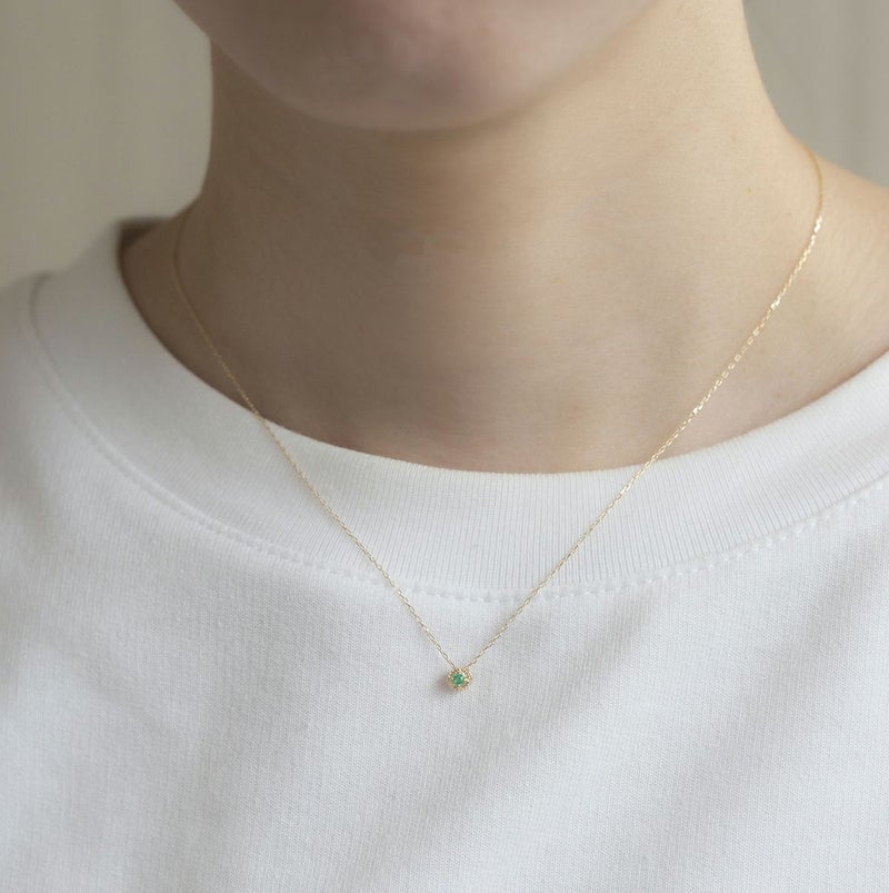 ミル打ち枠にセットされたストーンがクラシカルな雰囲気を醸し出すネックレス。