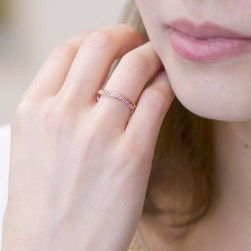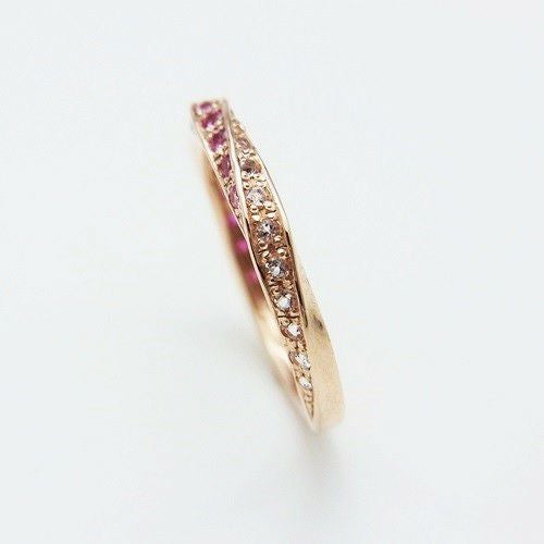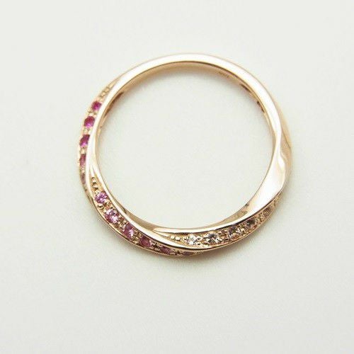 絶妙な奥行感にカラーサファイアのグラデーションが引き立ち存在感ある指元を演出します。