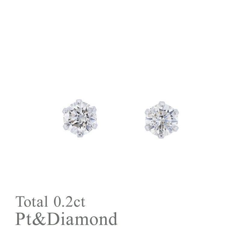 プラチナ900 一粒 ダイヤモンド スタッド ピアス 6本爪タイプ 0.1カラット×2石