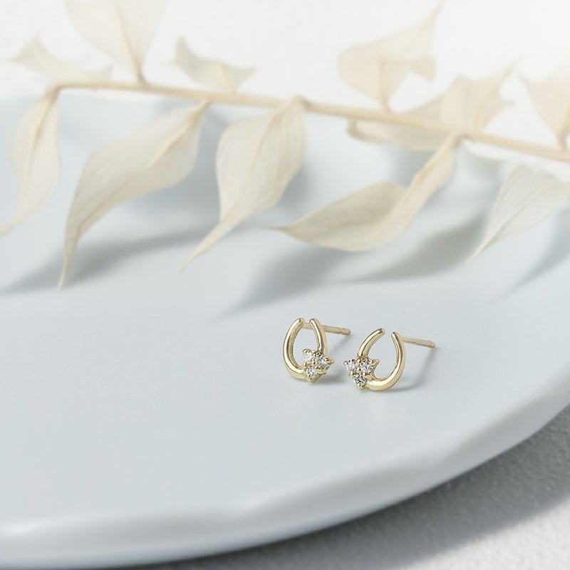 ホースシューにメレダイヤモンドをセットしたスタッドピアス。