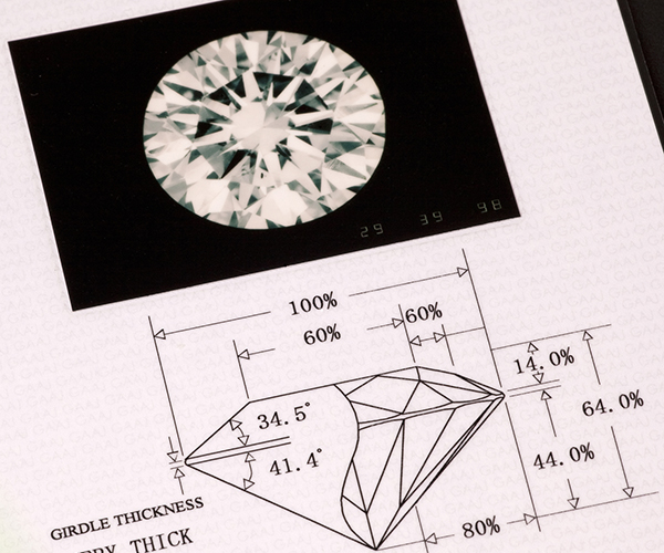 ブリリアントカットは、17世紀にイタリア・ベネチアの研磨職人によって原型が開発されました。18~20世紀と長い時間をかけて向上した研磨技術により、外形が正方形から円形になり、黄金比によってより美しく見えるように進化を遂げてきました。基本的に切子面は58面となっており、ダイヤモンドの輝きを左右しているブライトネス(白い輝き)、ディスパージョン(虹色の輝き)、シンチレーション(宝石や照明の動きによる内部の光のきらめき)の3要素を最大限に引き出しています。