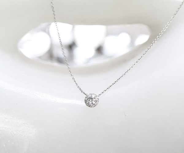 気品あるプラチナの輝きが、胸元を明るく彩る一粒ダイヤモンドネックレス。