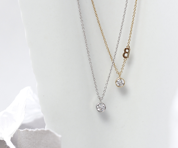 流行にとらわれない定番のデザインの一粒ダイヤモンドネックレスを、ぜひお楽しみくださいませ。
