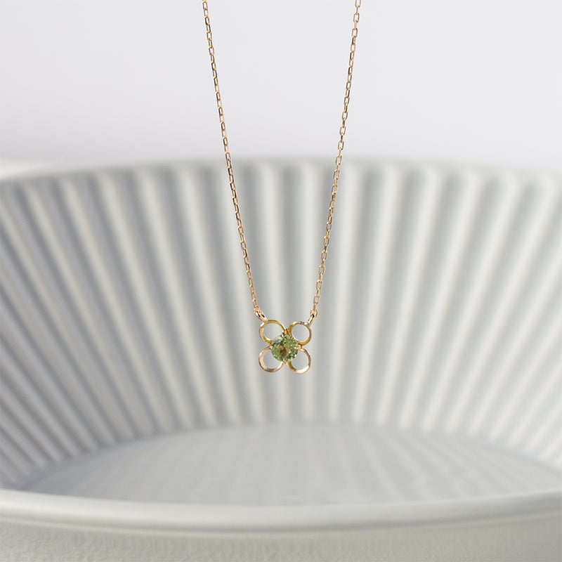 繊細なK10イエローゴールドに、爽やかなペリドットがきらめくネックレス。