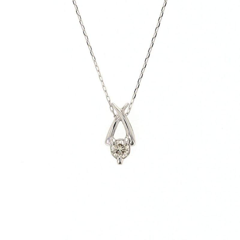 クロスラインデザインのプラチナにダイヤモンドを1石セットしたネックレス。