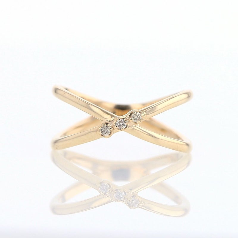 ふたつのラインが交差するクロスデザインのダイヤモンドピンキーリング。