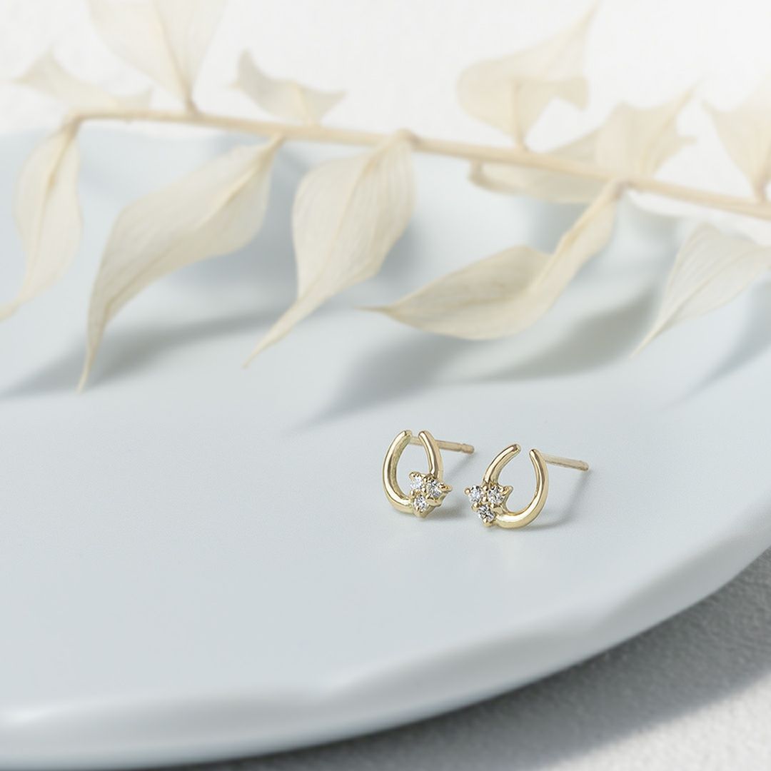 他の画像を見る ホースシューに花モチーフのダイヤモンドをセットした大人かわいいピアス K18 YG ホースシュー 馬蹄 ダイヤモンド ピアス 特別価格 ¥ 40,000 税込 送料無料 お気に入りに登録する