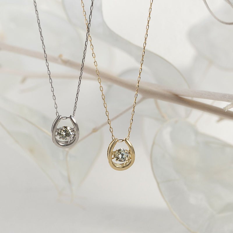 幸運の象徴とされる馬蹄モチーフに、ダイヤモンドをあしらったネックレス。