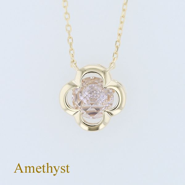 フラワーモチーフに淡い色味のアメジストをセットしたネックレス。