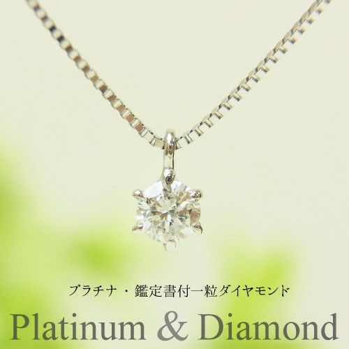 【鑑定書付】定番人気のプラチナ一粒ダイヤモンドネックレス