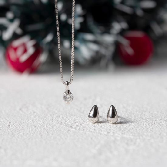 艶やかなプラチナが耳元と胸元で上品にきらめく、ピアスとダイヤモンドネックレスのセット。