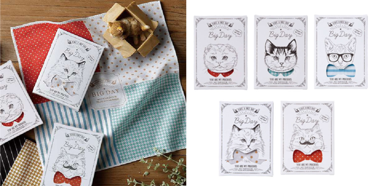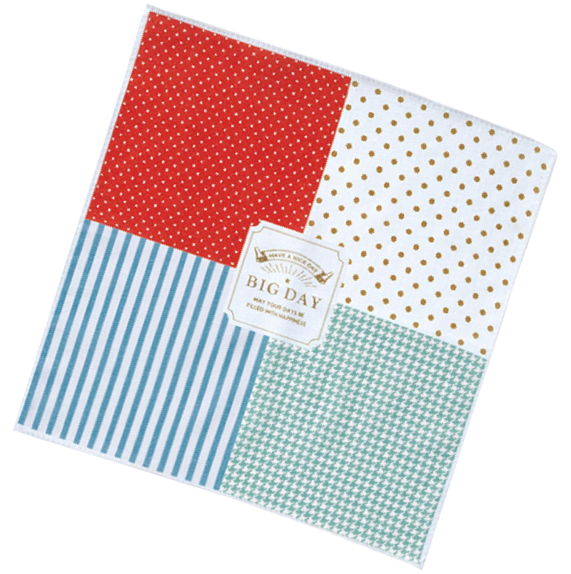 チェック柄などが組み合わされた個性的なデザインのハンカチをプレゼント。
